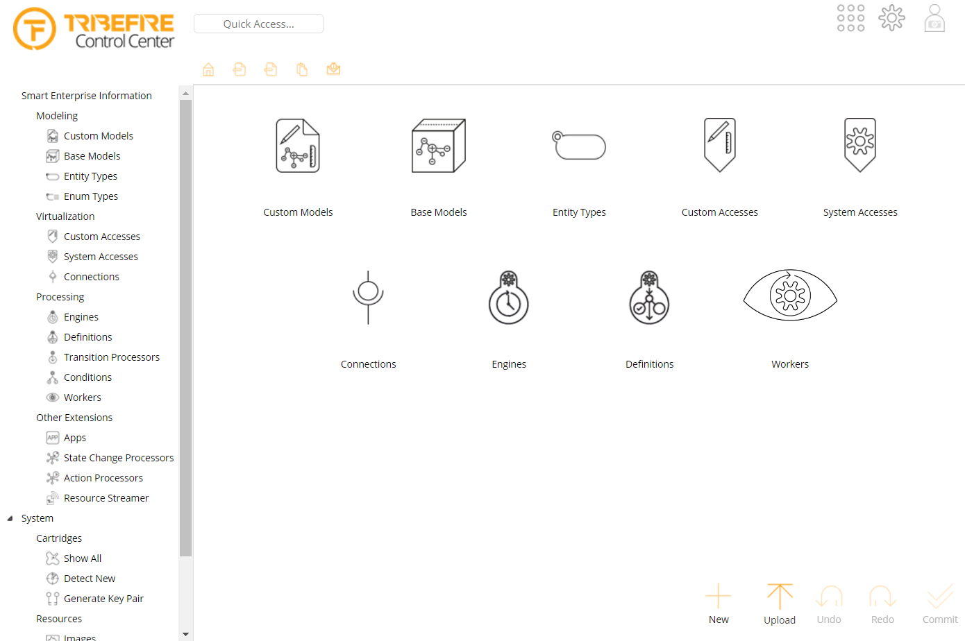 What follows is an outdated documentation. It uses the term Control Center for a slightly differently configured Explorer which we used to view system accesses like cortex, an access which stores Tribefire configuration.