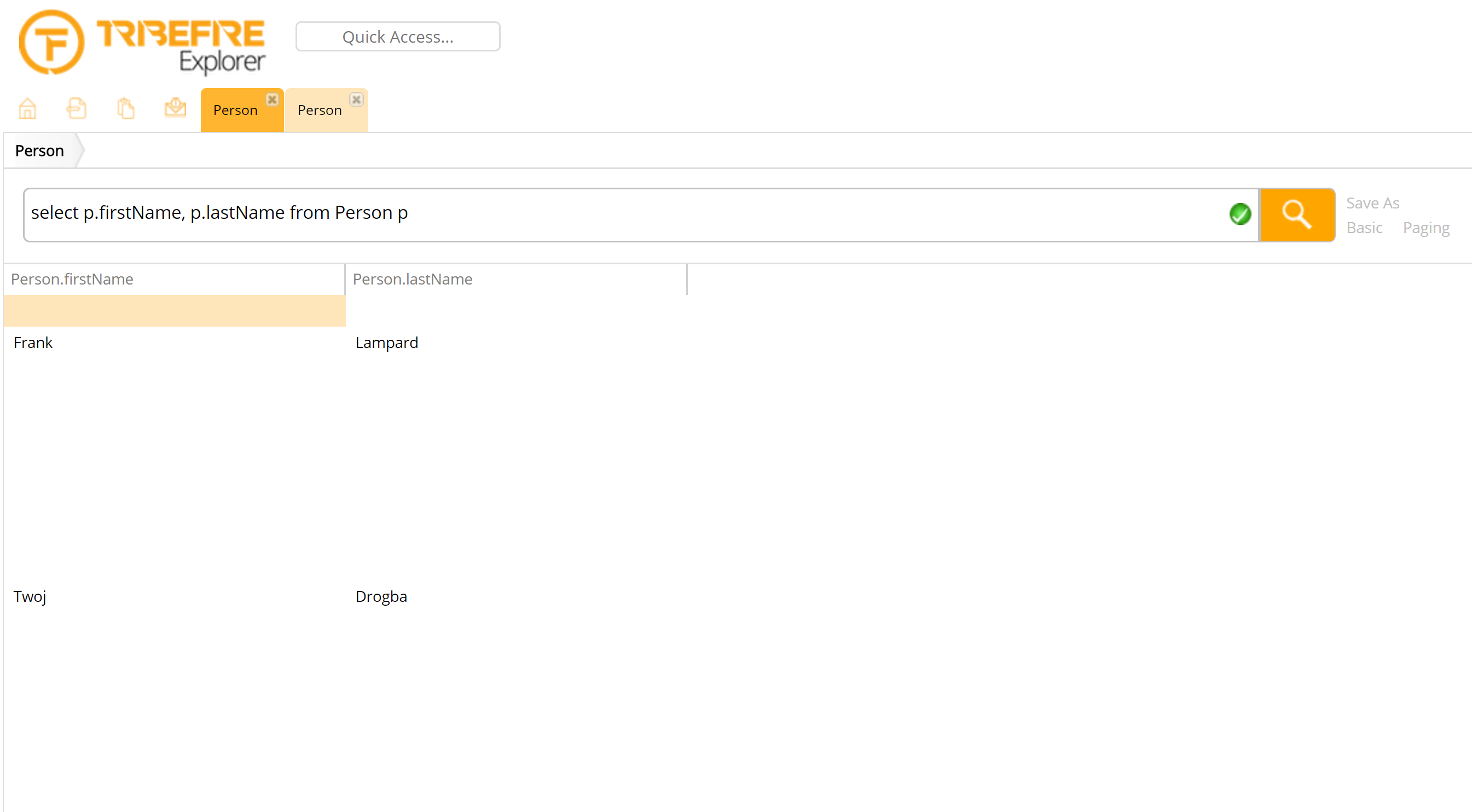 The QuickAccess component refers to the panel which is displayed at the left-hand side of the screen. It displays the individual instances of entity and the entity types of the model.