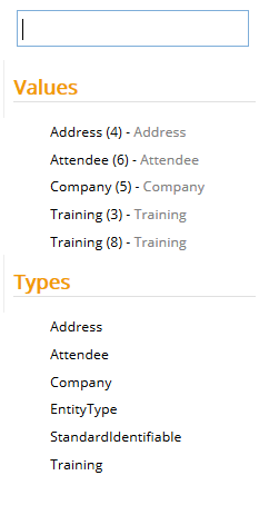 displays the Quick Access component in Selection Constellation, allowing you to choose between an existing instance of an entity or creation of a new one based on an entity type. - Clicking
