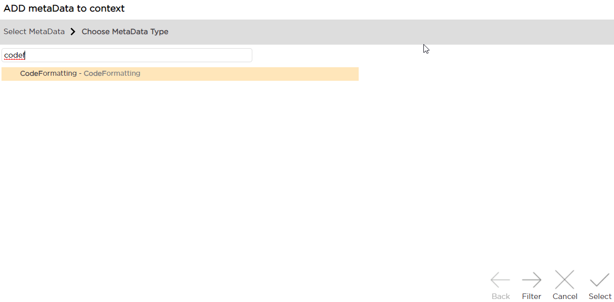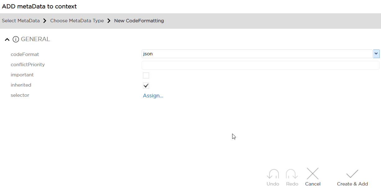 This metadata can be assigned to a String property to make sure that text formatting and highlighting is in accord with a specific programming language, for example in a field that's expected to store JSON requests. Formatting is applied in property dialog window.