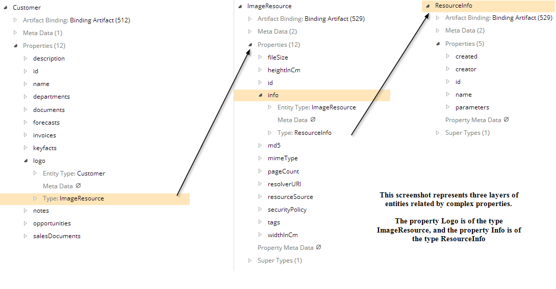 In the screenshot below it shows a hierarchy of three entities: Customer, ImageResource and ResourceInfo.