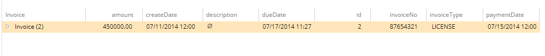We add the Hidden metadata to the entity Invoice and define the Date Property Discriminator as its selector. Then, we define its properties. We set discriminatorProperty to the value paymentDate and discriminatorValue to 8/7/2014 12:00.