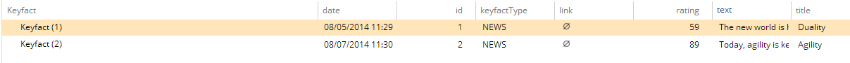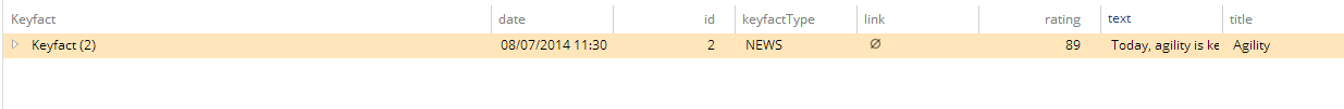 We add the Hidden metadata to Keyfact and define the Integer Property Discriminator as its selector. Then, we define its properties. We set discriminatorProperty to rating and discriminatorValue to 59.