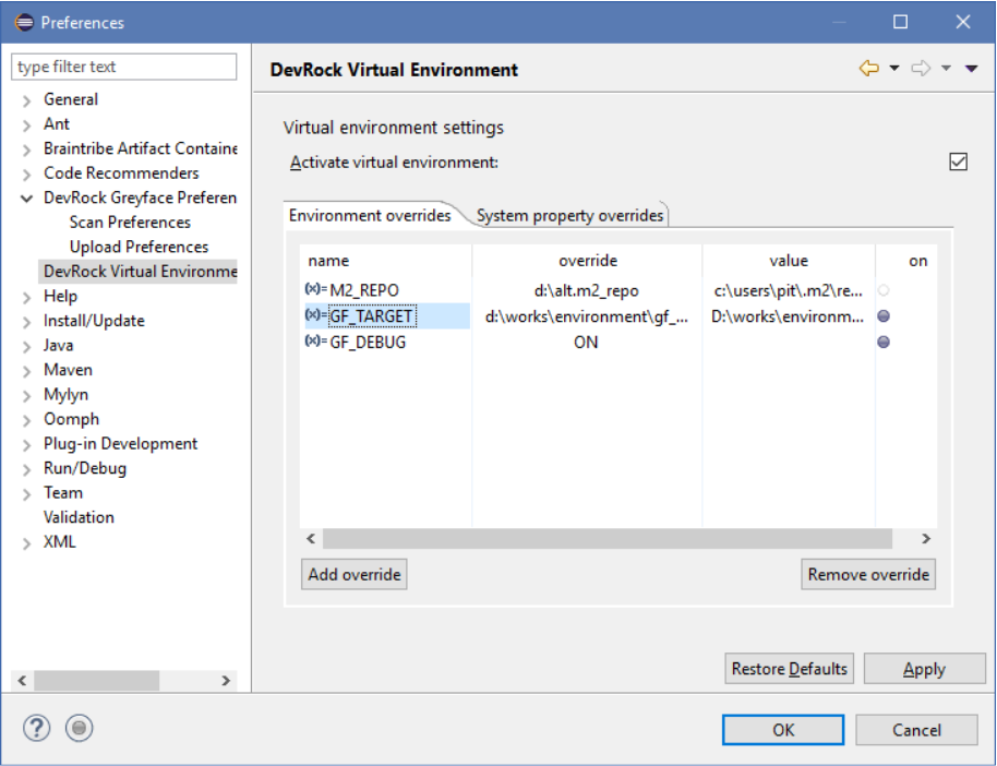 The preferences you edit are workspace specific, they’ll get stored in the following directory: <workspace location>/.metadata/.plugins/com.braintribe.devrock.Greyface in a file named com.braintribe.devrock.Greyface.prefs.