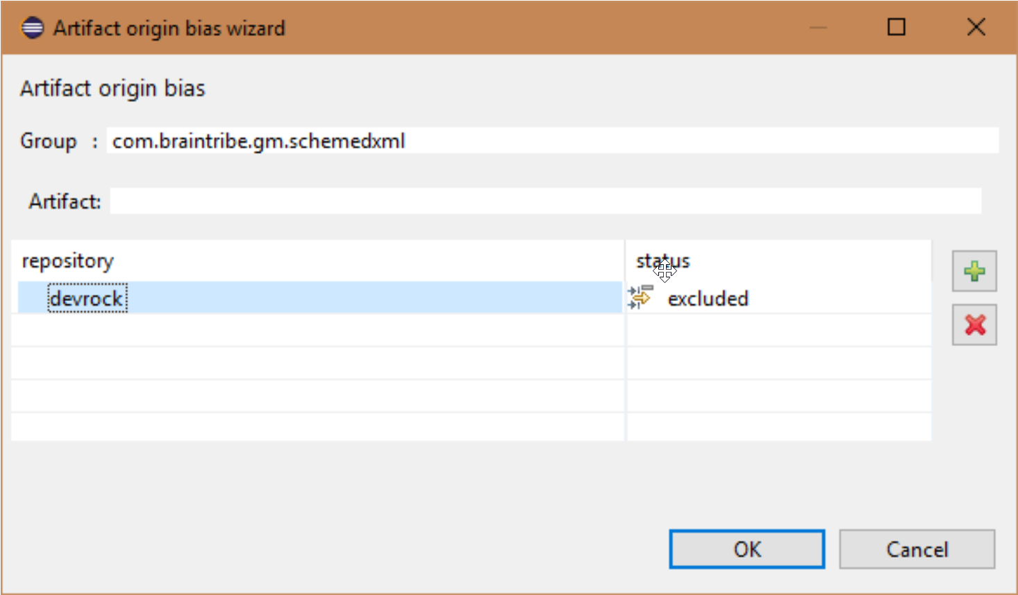 com.braintribe.devrock:malaclypse;distribution | Only the malaclypse artifact of the com.braintribe.devrock group are only retrieved from the repository with the ID of distribution (specified in settings.xml). Other repositories are ignored. When you add a single positive bias, you must also list all other repositories you still want to use. |