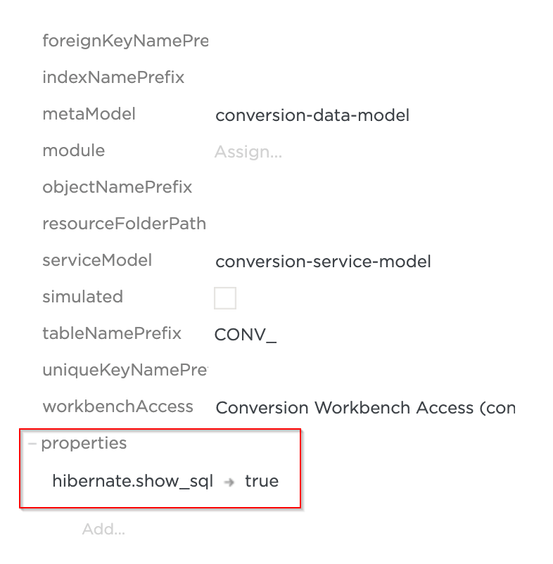 3. Enter one of the properties (e.g hibernate.show_sql) as the key.