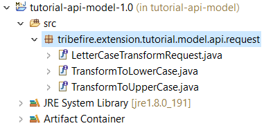 groupId.model, in this casetribefire.extension.tutorial.model. Let's change it totribefire.extension.tutorial.model.api.requestto follow conventions. -