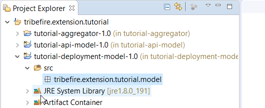 groupId.model, in this casetribefire.extension.tutorial.model. Let's change it totribefire.extension.tutorial.model.deploymentto follow Braintribe conventions. -