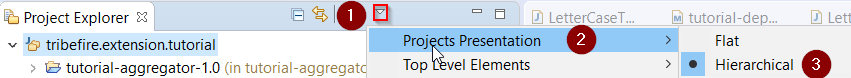 Open Eclipse. Let's set Project Presentation to Hierarchical: