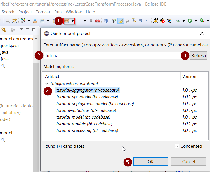 Now we can import our artifacts. Use the Quick Import feature as shown below (the list is empty until you type something and refresh):