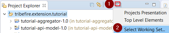 Now, we will need a working set for our artifacts. This is optional depending on your preferences, however this setup should be helpful when developing Tribefire artifacts. First, open the Select Working Set... menu:
