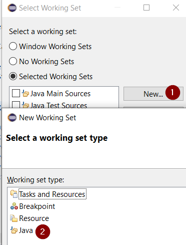 Select Java as working set type: