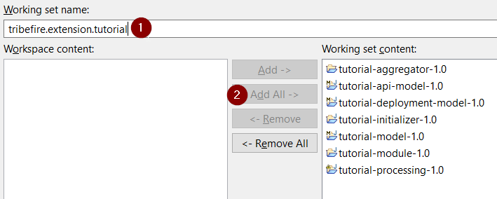 When prompted, add all artifacts to working set content: