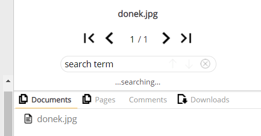 Side panel, where you can run search queries, switch between documents or pages, browse comments, and download the file: