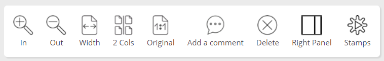 Top panel, where you can change document display settings, add comments, and open comments saved as stamps: